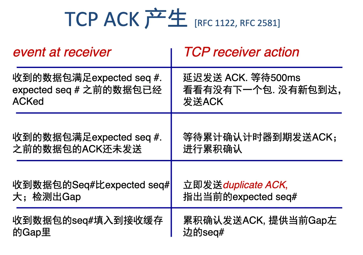 - 收到的包是乱序或者重复的包,Receiver 立即回复 ACK。